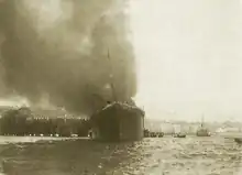 A Compañía Transatlántica Española ocean liner, Alfonso XIII, was in port. About 1600 hrs her Master, Captain Francisco Jaureguizar y Cagigal, with one of his officers and about 40 of his crew came alongside Cabo Machichaco in a steam launch to help. Members of the crew of other ships then in port also came to help, including from Pinillos Sáenz's ocean liner Catalina, British merchant ship Eden and French ship Galindo.[6] The effort now was not only to fight the fire, but also to salve items from Cabo Machichaco in case the fire spread further through the ship. The crew launched her lifeboats to save them from being destroyed.[4]