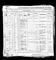 Passenger manifest for the SS Albert Ballin, September 27, 1923.