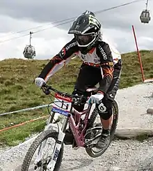 Sabrina Jonnier (born 19 August 1981) is a French former professional downhill mountain biker. She won the general classification of the UCI Downhill World Cup five times: in 2003, 2005, 2007, 2009 and 2010. She was also the world downhill champion in 2006 and 2007, in addition to four second-place finishes.[1]