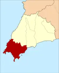 No part of Cape St. Vincent fits this description, but on the eastern side of Sagres Point is a harbor, Baleeira, port of the modern town of Sagres, protected by four small islands in a line (the tiny Martinhal Islets) visible in satellite imagery. At the far eastern end of the beach of Martinhal, erosion of the cliffs has exposed a series of Roman pottery kilns for fabricating transport amphoras and roof tiles.