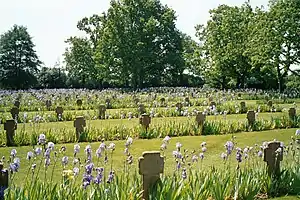 Saint-Désir-de-Lisieux is a Second World War German military war grave cemetery, located close to the village of Saint-Désir and 4 km (2.5 mi) west of Lisieux in the Calvados department, Normandy, France. It is located adjacent to the British Saint-Désir War Cemetery and is unique as the two burial grounds are linked by a pathway. It is the smallest German war cemetery in Normandy and contains the remains of 3,735 German military personnel. The cemetery was created by the British Graves Registration Commission in August 1944 with British and German casualties buried in adjacent fields.