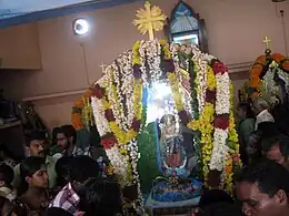 • Every year, Our Lady's Feast is celebrated in the month of October[11] – Saturday and Sunday following 10 October followed for 14 days – with great pomp and fanfare. Bishops, priests, religious sisters and people from every caste and creed from around the country attend the feast and seek Our Lady's Blessings. The offerings include cash, candles and other valuables. The Mass is followed by pageantry. The newly built church is magnificently illuminated.[12]