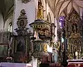 • Altar of the Transfiguration on the Mount Tabor. It is located in the southern nave. The altar is Baroque from the 18th century but is decorated with Renaissance ornaments from the older altars from the 17th century. On the sides of the painting there are pillars that are wrapped with vine leaves. It is decorated with acanthus and late Renaissance ornaments.