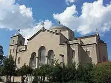 In 2003, construction began on an education center to the east of the sanctuary. It opened September 16, 2004, and contains classrooms, a library and ballroom to house gatherings.[2] On May 10, the Cathedral was consecrated in a service presided over by Archbishop Demetrios of America, Primate of the Greek Orthodox Church in America; Bishop Andonios of Phasiane, Chancellor of the Greek Orthodox Archdiocese of America; the Reverend Steven Zorzos, Presiding Priest of Saint Sophia Cathedral; the Reverend Dimitrios Lee, Assistant Priest of Saint Sophia Cathedral; the Reverend John Tavlarides, Presiding Priest Emeritus of Saint Sophia Cathedral; and Archdeacon Panteleimon Papadopoulos. As part of the service, the relics of three saints were interred in the altar table—those of Saint Panteleimon, Saint Barbara and Saint Kyrikos (representing a male saint, a female saint and one of the few child saints).