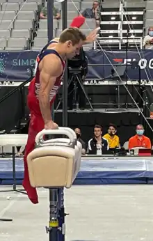 Samuel Anthony Mikulak (born October 13, 1992)[1] is a retired American artistic gymnast. He is a six-time U.S. national all-around champion (2013–2016, 2018–2019), the 2018 World bronze medalist on high bar, and a three-time Olympian (2012, 2016, and 2020). He is also an eight-time NCAA champion, winning the team, individual all-around and several individual event titles at the 2011, 2013 and 2014 NCAA Men's Gymnastics championships.[2]