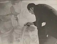 In 1935, a field and stadium were designed and constructed with Works Progress Administration labor and appropriations.[5] Several years later, the WPA would make another addition to the Samuel J. Tilden High School, this time in the form of a mural for the auditorium. The project took nearly two years to complete, as muralist Abraham Lishinsky, working with his colleague Irving A. Block, designed and painted a 2,400-square-foot (220 m2) mural depicting “Major Influences in Civilization” for the auditorium.[6] Among the six assistants they employed over time was the artist Abram "Al" Lerner.[7]