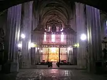 In 1571 an iron grille was erected, covering the three naves and dividing the church into two parts: the front for common people, and the apse for the monks. The fence is by Tomás Celma and is of high quality.