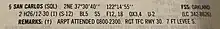 San Carlos Airport covers 110 acres (45 ha) at an elevation of 5 feet (2 m). Its one runway, 12/30, is 2,621 by 75 feet (799 x 23 m) asphalt.[1]