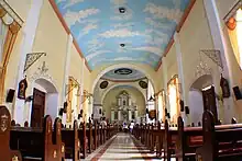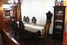 The second level of the convent has been converted into a museum housing different historical artifacts and religious items. The Museo San Rafael was officially opened on September 29, 2006 during the feast of San Rafael, coinciding with the 256th founding anniversary of the town. Besides the main hall of the convent, three rooms now house different exhibits. The first room, named Museo ng Bayan (Museum of the Town) houses different Spanish-era items common to old San Rafael like an old rice mill, traditional clothes and house furniture. Located between the convent and the church is a small room containing a painting in memory of the characters Basilio and Crispin from Jose Rizal's Noli Me Tangere.[5] A life-size statue of Jose Rizal can also be found inside the room. Farther inside the room, the deep crevice between the stone walls is said to be a well. In the next room, called Museo ng Simbahan (Museum of the Church) are collections of religious items including old stampitas and record books of the parish, a scaled replica of the church retablo, old santos, heavily embroidered vestments and an old episcopal chair. The third room, named Museo ng mga Anghel (Museum of the Angels) is an exhibit of different artworks of angels in recognition of the town's other patron saint, Archangel Raphael. The town has held the annual Angel festival every 29 September since 2002.[7]