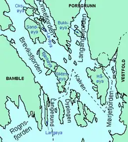 ![]() Sandøya seen together with other islands outside Porsgrunn | |