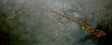 Fossils from many other parts of the world have been assigned to Saniwa, although all are fragmentary. In 1899, Argentine paleontologist Florentino Ameghino named another species of Saniwa, S. australis, from lower Miocene rocks in Argentina. It is now considered a dubious name, because the material cannot be assigned with confidence to Saniwa. S. orsmaelensis was described from Belgium in 1923, but because its naming was informal, it was designated a naked name. S. orsmaelensis was later suggested to be either synonymous with S. ensidens or a different, indeterminate species of Saniwa. Unlike the Argentine fossils, the Belgian remains represent a definite occurrence of Saniwa outside North America.[2] A 2022 study found S. orsmaelensis to be a distinct and valid species of Saniwa, with remains of the species also reported from France.[10] "S." feisti was named from the Eocene Messel Pit in Germany in 1983.[11] "S." feisti is no longer considered to be a species of Saniwa, but is placed in the separate genus Paranecrosaurus within the family Palaeovaranidae, which is more distantly related to Varanus than Saniwa.[3][12]