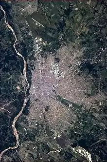 The city is located in the eastern part of Bolivia (17°45', South, 63°14', West) at around 400 m above sea level.[9] It is part of the province of Andrés Ibáñez and the capital of the department of Santa Cruz. The city of Santa Cruz is located not far from the easternmost extent of the Andes Mountains and they are visible from some parts of the city.[10]