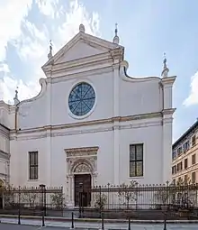 A church at this site, which lay outside the then city walls, was founded in the early 16th century by Hieronymite monks. Almost abandoned after the devastating siege of the city in 1512, the Hieronymites began constructing a new church in 1522. When the Hieronymites were suppressed in 1668, the Pope Clement IX, transferred the monastery to the Jesuits, who established a school. In 1797, the monastery was closed, but the church remained open.