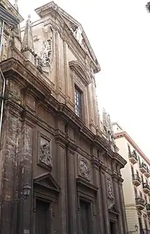Construction of the church began on 10 August 1601 with funds assigned by the Senate of Palermo and donations.[1] Saint Camillus de Lellis attended this inauguration.[1] In the same area the house of the Crociferi was erected.[1]