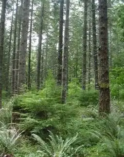 Douglas-fir is the primary tree species in the Santiam State Forest. In some areas, the Douglas-fir stands are mixed with western hemlock, western red cedar, red alder, and bigleaf maple. A few Pacific yew can also be found at the lower elevations. Mountain hemlock, noble fir, silver fir, and western white pine are found in the higher elevations. Douglas-fir areas that have been recently cut and reforested are characterized by even-aged layers of seedlings or saplings. Stands cut more than 15 years ago have grown into closed canopy stands. These areas have a dense, even-aged layer of rapidly growing Douglas fir trees. The forest also has some older stands that naturally regenerated prior to the establishment of the state forest. These areas are typically mixed conifer stands that include Douglas-fir, hemlock, western red cedar, and noble fir. The forest has only a few layered stands, approximately 8,500 acres (34 km2). These are the result of a selective cutting program during the 1970s and 1980s. These stands normally have an over-story of large Douglas-fir trees. There are ten separate patches of old-growth forest, totaling 380 acres (1.5 km2). These stands range in age from 120 to 500 years.[2]