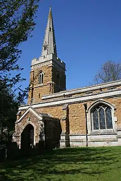 The very fine Grade II* church with its crocketed spire is dedicated to St Peter.