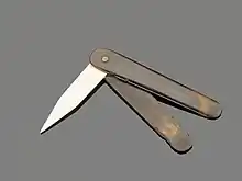 The first medical writings of ancient Greeks indicate they were commonly using tools identical to today's scalpels around 500 BC.[3] The amphismela was an anatomical knife, edged on both sides. The term comes from the Greek αμφι (utrinque, "on both sides"), and μελιζω (incido, "I cut").[4]
