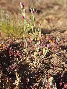 Schenkia australis grows as an annual, or rarely biannual, herb, from 2 to 30 centimetres high. Flowers are pink, red or yellow.[1]