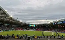 Some friendly matches are played at smaller venues. Pittodrie Stadium in Aberdeen and Easter Road in Edinburgh were both used as venues during 2017. Other stadiums were also used while Hampden was being redeveloped during the 1990s. Celtic Park, Ibrox Stadium, Pittodrie Stadium and Rugby Park all hosted matches during the 1998 World Cup qualifying campaign,[95] while Tynecastle Stadium,[96] Pittodrie,[97] Celtic Park and Ibrox Stadium were used for Euro 2000 qualifying matches. Since the last redevelopment to Hampden was completed in 1999, Scotland have played most of their competitive matches there. The most recent exception to this rule was in 2014, when Hampden was temporarily converted into an athletics stadium for the 2014 Commonwealth Games.[98] The SFA purchased Hampden from Queen's Park in 2020,[99] and all of Scotland's home games have been played there since then.