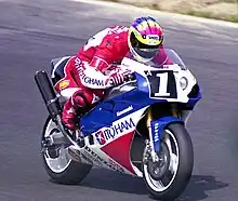 Having previously scored a handful of World Superbike podiums, he became the Superbike world champion riding for Muzzy Kawasaki in 1993, and was runner-up in 1994.[3] He left the series after a poor start to 1995,[4] replacing the retired Kevin Schwantz at Suzuki in the 500 cc Grand Prix world championship. Staying with Suzuki in 1996 he finished sixth overall.[5]