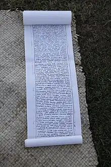 Copies of the scroll include Manuscript 24 of the Drower Collection (DC 24), currently held at the Bodleian Library.[2] The scroll was originally copied by Yahya Bihram in 1832 at his sister's son's house in Muhammerah (Khorramshahr), Iran.[3] The scroll was analyzed and translated into German by Bogdan Burtea in 2005.[2][4]