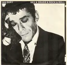 "Sex & Drugs & Rock & Roll" is a song and single by Ian Dury. It was originally released as a Stiff Records single, with "Razzle in My Pocket" as the B-side, on 26 August 1977.[3] The song was released under the single name "Ian Dury", but three members of the Blockheads appear on the record – the song's co-writer and guitarist Chaz Jankel, Norman Watt-Roy on bass and drummer Charlie Charles.