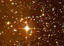 The first known-recorded observation of VY Canis Majoris is in the star catalogue of the French astronomer Jérôme Lalande in 1801,[lower-alpha 2] which lists it as a 7th order of magnitude star. Further quite frequent studies of its apparent magnitude imply the light of the star as viewed from Earth has faded since 1850, which could be due to emission changes or a denser part of its surrounds becoming interposed (extinction).[19] Since 1847, VY Canis Majoris has been described as a crimson star.[19] During the 19th century, observers measured at least six discrete components, suggesting that it might be a multiple star. These are now known to be bright zones in the host nebula. Observations in 1957 and high-resolution imaging in 1998 all but rule out any companion stars.[19][20]