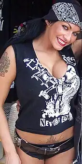 She also starred in a pin-up film titled American Pinups Vol. 2.[66] Martinez collaborated with Jewel De'Nyle on an all-female spanking and soft-core bondage video entitled The Notorious Jewel De'Nyle & Shelly Martinez.[67] In October 2009, Martinez posed nude for a contest called "THE 1 Contest".[68] In November 2012, Martinez appeared on the fourth season of the Bad Girls Club spin-off Love Games: Bad Girls Need Love Too.