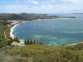 Shoal Bay is the most eastern suburb of the Port Stephens local government area in the Hunter Region of New South Wales, Australia.[2] It is located on the southern shore of Port Stephens, adjacent to the bay of the same name at the entrance to the port.[7] It includes part of Tomaree National Park within its boundaries and, like other suburbs around Port Stephens, is a popular tourist destination, especially in summer months.[8] At the 2021 census the town of Shoal Bay had a population of 1,815 but the population increases significantly during tourist season.[1]