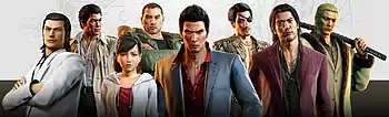 Japanese video game developer Sega's Yakuza media franchise, known as Ryū ga Gotoku (龍が如く, lit. "Like a Dragon") in its native Japan and other Asian territories, features an extensive cast of characters. This article describes notable characters who appear in the Yakuza main series video games and associated remasters or remakes, with characters sorted by organizations or groups according to the original works. The English-language adaptation equivalents are mentioned when available.