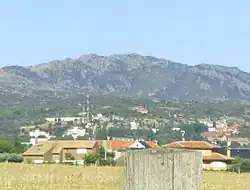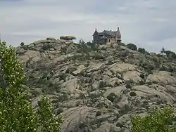 The Sierra de Hoyo is distributed forming a sort of inverted arc, whose ends are guarded by the peaks of Navalospinos (1171 m) —to the northeast—, El Picazo (1268 m) ―to the south― and Peña Cardín (1130 m) —to the northwest—. In its southeastern foothills there are different mountains that serve as a transition to El Pardo, as in the case of La Solana (1002 m) in Hoyo de Manzanares and, to the south, the occasional isolated formation rises, as in the case of Canto del Pico (1005.887 m).[2] The latter, within Torrelodones, which is one of the most important granite formations in the surroundings of the sierra, is dominated by a modernist palace, which was owned by Francisco Franco, to which it gives its name.