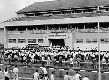 In 1962, the Stadium was used as a counting station for the voting over matter of Malaya-Singapore merger where the People's Action Party had a clear-cut victory.[8] The political significance of the Stadium was clear enough—the hall was a key connection spot between the ruling party and its supporters. On the other hand, during the times of trade union riots, the hall acted as a gathering spot for the unions.[5] Such preference possibly reflected the existence of hall more than just a building but a essential space where political activities or social movements from the working class could be made widely known to the rest of the society.