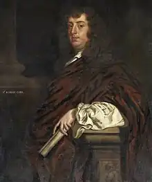 Sir Robert Carr, 3rd Baronet (c.1637 – 14 November 1682) was a prominent English politician of the Restoration period who served as Chancellor of the Duchy of Lancaster in the reign of Charles II.[1]