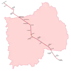 System length | 46.5 km (28.9 mi)[4] | |||||||||||||||||||||||||||||||||||||||||||||||||||||||||||||||||||||||||||||||||||||||||||||||||||||||||||||||||||||||||||||||||||||||||||||||||||||||||||||||||||||||||||||||||||||||||||||||||||||||||||||||||||||||||||||||||||||||||||||||