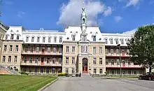 In August 1892, Brousseau, with the help of Fournier, founded the community of the Sœurs de Notre-Dame du Perpétuel Secours, whose mission was the care of the elderly and orphans as well as the education of children.[5] In September, Fournier, or Mother Saint-Bernard as she was called, and the sisters took charge of the classes in the village, and in November they moved into the first wing of the convent he had built. The convent also served as a home for the elderly and an orphanage. Within about three weeks of opening, it had almost two dozen residents. The first profession occurred on 27 March 1897, when fifteen sisters pronounced the three vows of religion for a year, renewing them annually until the taking of their perpetual vows on 10 July 1908.[6]