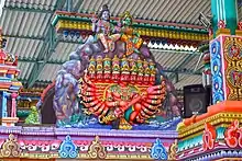 The tale of Ravananugraha (pictured) inspired a sequence in the film in which Rama Rao's character Ravana would sport ten heads all chanting Om Namah Shivaya while lifting the Kailasa hill on his shoulders