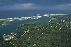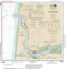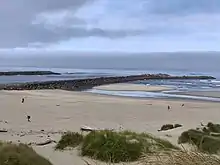 The Siuslaw jetties (/saɪˈjuːslɔː/ sy-YOO-slaw)[1] at Florence, Oregon, in the United States, are parallel rubble-mound structures at the entrance of the Siuslaw River, bounding the north and south banks and protecting the navigation channel. The jetties extend into the Pacific Ocean, with spur jetties designed to reduce breakers and shoaling across the sand bar.