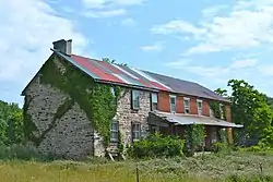 This historic structure is a two-and-one-half-story, three-bay, stone building that was designed in the Georgian-style with a five-bay, two-and-one-half-story, brick addition that was built between 1837 and 1850. The sections are unified by a gable roof.
