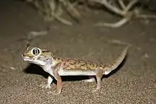 The small-scaled wonder gecko (Teratoscincus microlepis) is a species of lizard in the family Sphaerodactylidae. The species is endemic to Western and South Asia.