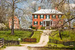 Smithfield Farm is a historic plantation house and farm located near Berryville, Clarke County, Virginia, United States. The manor house was completed in 1824, and is a two-story, five-bay, brick dwelling in the Federal style. It has a low-hipped roof and front and rear porticos. Also on the property are a schoolteacher's residence and a combination farm office and a summer kitchen, each with stepped parapet faҫades. Also on the property are the contributing large brick bank barn (1822), a brick equipment shed, a slave quarters, and a stone stable, all built around 1820, and a wooden barn (c. 1830).[3]
