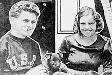 Smoky appeared early on in the construction of the Olympic Village, with some sources claiming he was born on the same day that work on the Village began on 2 January 1932.[4][5][6] He was a small black dog of uncertain ancestry, believed to be a combination of Scottish terrier, bulldog, Australian sheep dog along with other breeds. He became extremely popular with all visiting Olympic delegations.[7] He survived a couple of broken legs. He posed with athletes from all nations and was given a blanket on which were pinned meddles, pins and badges of many nations.[6] Smoky briefly went missing on 14 July, with it claimed that "noted athletes from all over the world mourn his absence".[7] However, he returned the next day.[5]