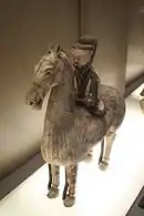 Artisans and craftsmen during the Han had a socio-economic status between that of farmers and merchants.[63] Yet some were able to obtain a valuable income, such as one craftsman who made knives and swords and was able to eat food fit for nobles and officials.[64] Artisans and craftsmen also enjoyed a legal status that was superior to merchants. Unlike lowly merchants, artisans were allowed by law to wear fancy silks, ride on horseback, and ride in carriages.[64] There were also no laws which barred artisans from becoming officials. An artisan painter who worked at the Imperial Academy turned down many offers to become nominated for public office.[65] In contrast, a bureaucrat who appointed a merchant as an official could suffer impeachment from office, while some even avoided nominations by claiming they were merchants.[65]
