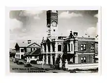 - ↑ "SOLDIERS' MEMORIAL HALL, TOOWOOMBA". The Telegraph. No. 16105. Brisbane. 12 July 1924. p. 7. Retrieved 3 April 2017 – via National Library of Australia.