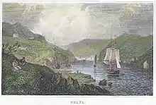 The rocks at the entrance to Solva Harbour made it one of the most sheltered anchorages between Fishguard and Milford Haven;[3] it was marked on a 1578 parish map of Pembrokeshire as Dolvath Haven.[4] On a 1748 map it is named Solvach.
