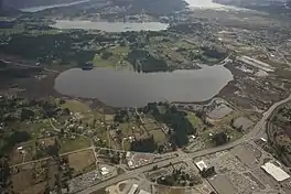 Somenos Lake is a small shallow water body located in the Municipality of North Cowichan on Southeast Vancouver Island. Somenos Lake has a maximum area of approximately 247 ac, 100 ha at 15.3 feet (4.7 m) above geodetic datum.[1] The Lake is relatively shallow with a maximum depth of 22.2 feet (6.8 m).[1] Somenos Lake is fed by three major tributary streams: Richards Creek from the North and Northeast, Averill Creek from the Northwest and Bings Creek from the West. The lake is drained near its southern extremity by Somenos Creek which flows southeast approximately 4 kilometres (2.5 mi) to the Cowichan River.