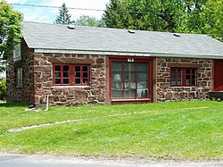 The Somersville Historic District encompasses the historic components of the mill village of Somersville in western Somers, Connecticut, United States. The district is centered on a mill complex on the Scantic River, which divides the district. The most significant years of development were between about 1835 and 1935, although the area has a history (and surviving structures) dating to the 1760s. The district was listed on the National Register of Historic Places in 1995.[1] The Mill itself has since burned down and as of October 2018 is currently open field, although the canal structure remains in place.