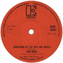 Tom Rush covered "Something in the Way She Moves" on his 1968 album The Circle Game.[1] Taylor had played the song for Rush when he visited the Elektra Records offices for an audition in 1967.[6] Rush's version was released as a single and become popular on New England radio stations.[12][6] Crawdaddy! reviewed the song as being the best song on The Circle Game, saying that it "flows beautifully with Bruce Langhorne's country stylings pushing it through," also acknowledging that "Rush's brand of vocalizing fits perfectly" because "he can never get excited about anything."[12]