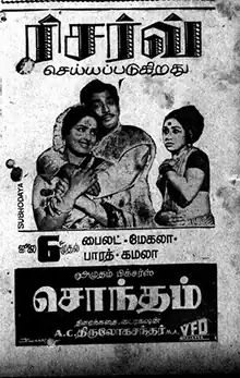 Sontham (transl. Belonging) is a 1973 Indian Tamil-language drama film directed by A. C. Tirulokchandar. The film stars Muthuraman and K. R. Vijaya. It is based on the play of the same name by Karaikudi Narayanan. The film was released on 6 July 1973