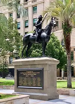 South African War Memorial is a heritage-listed memorial at ANZAC Square, 228 Adelaide Street, Brisbane City, City of Brisbane, Queensland, Australia. It was sculpted by James Laurence Watts from 1912 to 1919. It is also known as Boer War Memorial and The Scout. It was added to the Queensland Heritage Register on 21 October 1992.[1]