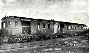 During the testing stage, an enclosed body was added. During a 167-mile long (269-kilometre) test run to Volksrust, various adjustments were made to the water circulating arrangements. This improved the power output to the extent that the tram traction motors were unable to stand the continuous current which was generated, and they were replaced by two 50 horsepower (37 kilowatts) Siemens traction motors supplied by General Electric. These, in turn, required more current than the Whippet engines could generate and they were replaced by a 120 horsepower (89 kilowatts) Holt engine from a Caterpillar tractor, supplied by Messrs Fraser and Chalmers of Bulawayo in Southern Rhodesia.[3]